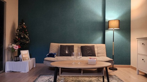 ทีวี, ตู้เย็น, เครื่องซักผ้า, ไมโครเวฟ, เตาไฟฟ้า, เครื่องดูดควัน, เครื่องทำน้ำอุ่น, แอร์ 2 เครื่อง, เตียง 6 ฟุต + ฟูก